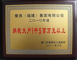 由廈門市湖里區(qū)政府舉辦的 “湖里區(qū)2010年度納稅先進(jìn)企業(yè)”的評(píng)選名單已經(jīng)正式揭曉,鷺燕(福建)集團(tuán)有限公司榜上有名,獲得了 “湖里區(qū)2010年度納稅大戶1千5百萬(wàn)元以上先進(jìn)企業(yè)”的榮譽(yù)稱號(hào)。自2007年底搬遷至湖里區(qū)以來(lái),我司已連續(xù)三年獲此榮譽(yù)稱號(hào)。