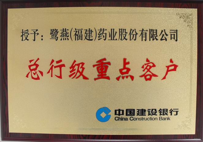 此次鷺燕(福建)藥業(yè)股份有限公司獲評(píng)中國建設(shè)銀行“總行級(jí)重點(diǎn)客戶”,不僅說明鷺燕企業(yè)的誠信及發(fā)展實(shí)力為中國建設(shè)銀行總行認(rèn)可,也為鷺燕企業(yè)與中國建設(shè)銀行建立銀企雙贏互動(dòng)的戰(zhàn)略合作伙伴關(guān)系奠定了更為堅(jiān)實(shí)的基礎(chǔ)。