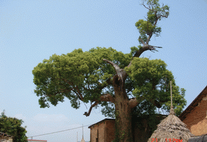 (藍(lán)天,白云,古樹(shù),房屋一幅和諧美麗的“圖畫”)